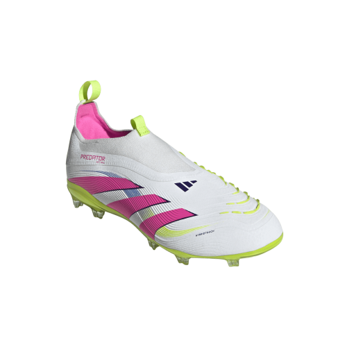 V těchto juniorských kopačkách adidas Predator Elite Laceless z kolekce Celestial Victory Pack budeš moci hrát naplno. Mají strategicky umístěné gumové prvky Strikeskin a konstrukci bez šněrování. Pružný svršek HybridTouch zaručí dokonalý kontakt s míčem. Speciální podešev pro pevné povrchy ti zaručí stabilitu.