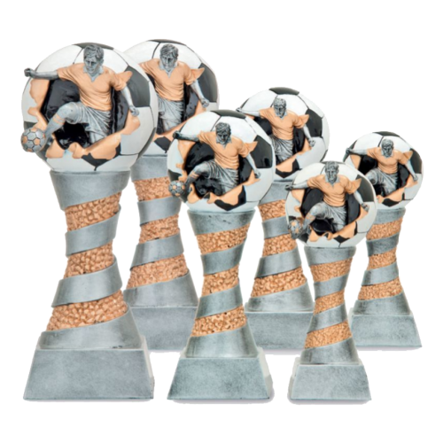 Fotbalová plastika trofej hráč a míč o velikosti 21, 24, 26, 29, 32 a 36 cm.